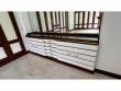 Ampla cozinha com muitos armários e quarto e banheiro de auxiliar.